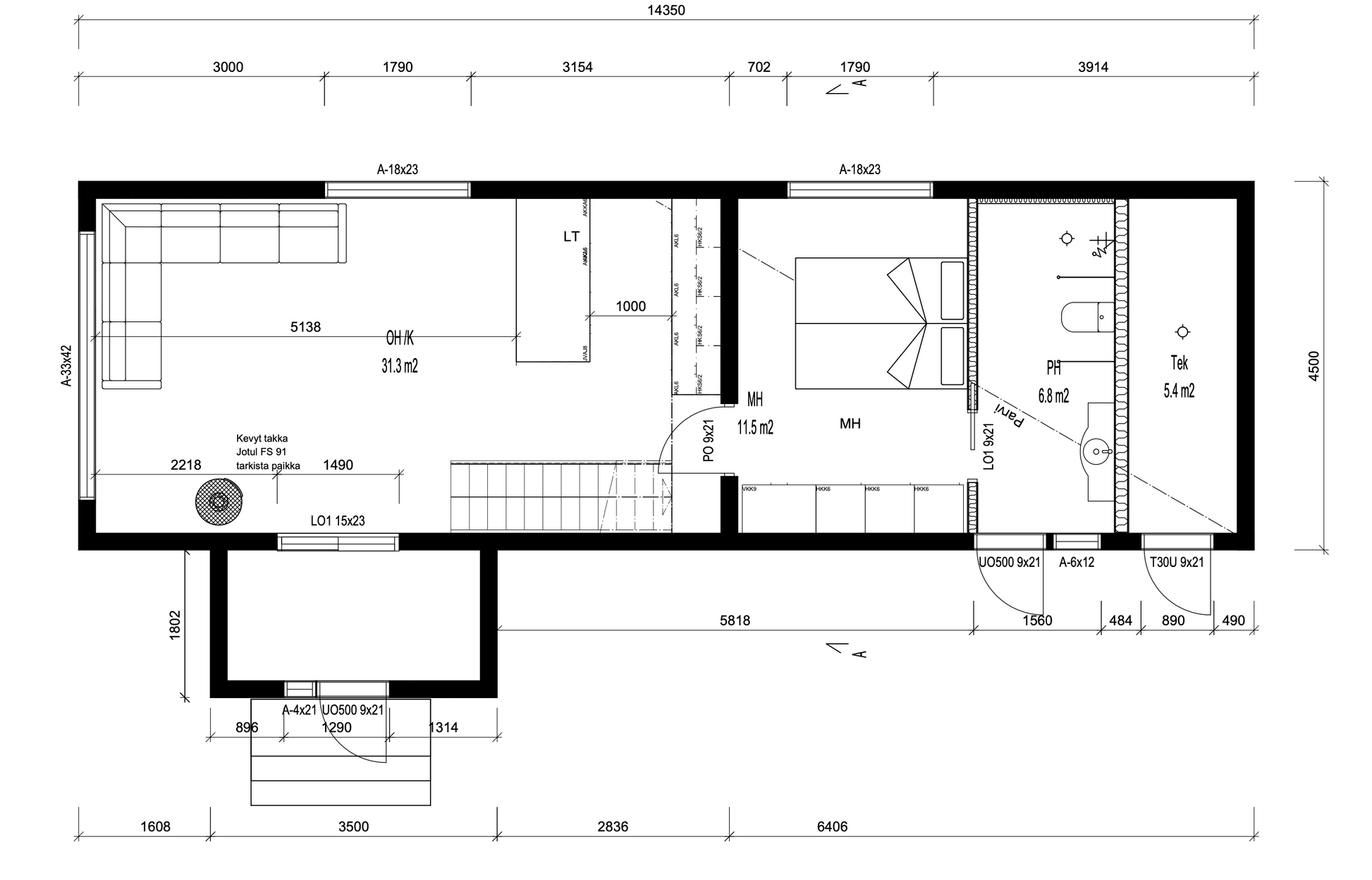 - PVC okná, vchodové dvere sú inštalované v zárubni do steny;